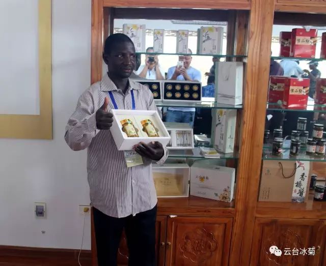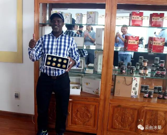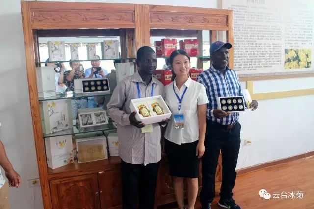 2017年8月4日,來自非洲肯尼亞、馬拉維、南非、塞拉利昂、阿爾及利亞、貝寧、布隆迪、吉布提、喀麥隆、科特迪瓦、馬達加斯加、馬里、尼日爾、剛果(金)14個國家的46名國際友人來到【云臺冰菊】參觀、考察、調研、交流。本公司董事長宋曉龍先生熱情接待了來訪友人,并親率云臺冰菊接待組帶領來訪友人參觀云臺冰菊種植基地和產品展廳,就云臺冰菊的歷史淵源、發展歷程、種植過程及特色亮點作了生動而詳細的介紹。